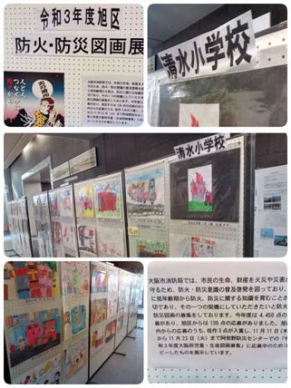 令和3年11月8日(月)〜11月30日(火)まで、旭区民センター1階エントランスホールで開催されています。清水小学校の児童の作品も展示されています。