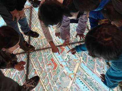 昔使われていた道具や100年前の地図などを見て、今と昔の違うところや同じところを学習しました。実際に道具に触れてどのように使うのかみんなで考えながら学習することができました。
