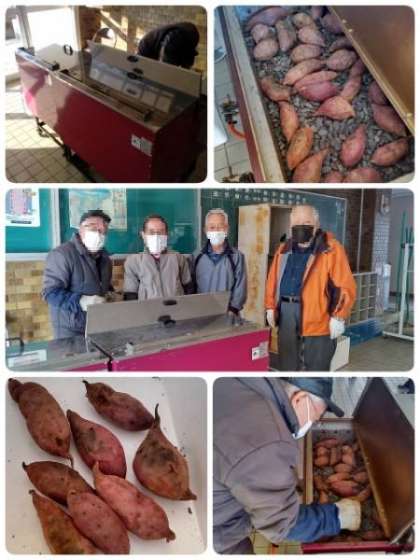 今日は、2年生の「おいもパーティー」の日です。朝早くから、地域の方々が準備に来てくださいました。石焼いも機を使って、本格的な石焼き芋を焼いていただきました。