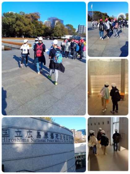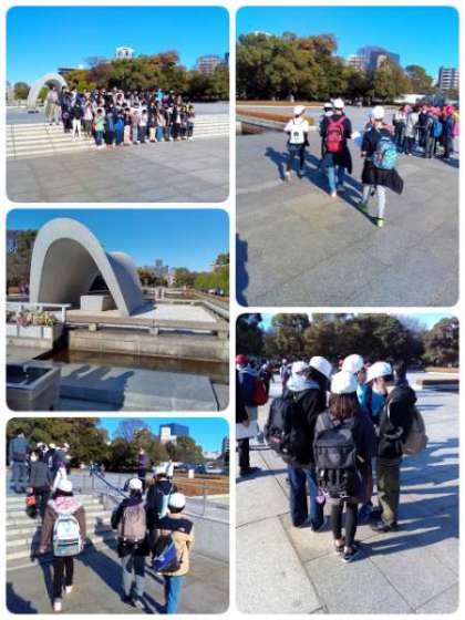 全員で記念写真を撮ったあと、平和記念公園内を班ごとにフィールドワークしました。公園内にある様々な碑や施設などを見て回りました。