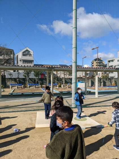 なわとびやドッチビー、鬼ごっこなどをして過ごしています。