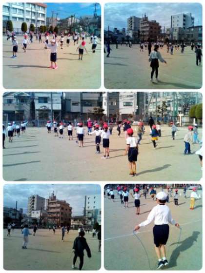 体力向上を目指して、なわとび集会を行っています。15分休みに南運動場に集合して、様々な「技」に挑戦しています。寒さに負けない元気な身体を目指しましょう。