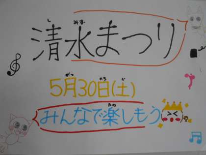 5月30日(土)に行う清水まつりに向けて、先週から1年生〜6年生が一緒に協力し、活動する「たてわり班活動」をしています。どの班も趣向を凝らしたゲームを考えているので、とても楽しいおまつりになりそうです!また、今年度も清水さくらの会のみなさんが「むかしあそび」として、おはじきやこままわし、紙風船・・・など、楽しいあそびを用意してくださっています。清水まつりの日がとても楽しみです!