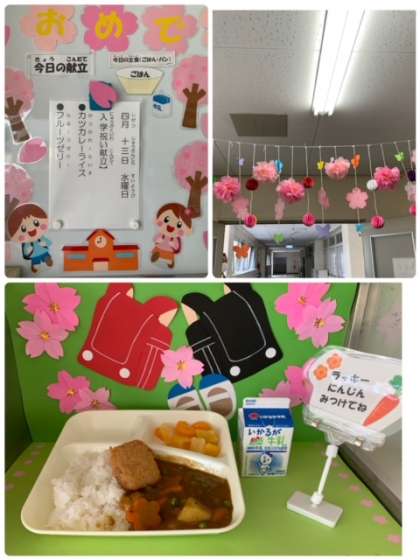 今日は、入学お祝い献立で「カツカレーライス、フルーツゼリー、牛乳」でした。