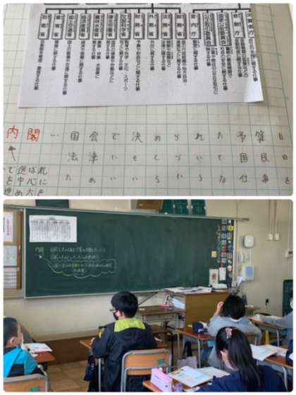 社会の学習では、公民分野の政治の学習に取り組んでいます。
