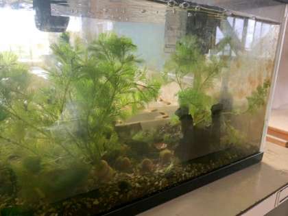 メダカの観察をするため教室の前に水槽があります。