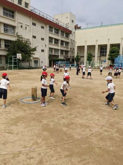 段ボールを守るために、時間内ずっと段ボールの周りを回り続けるチームやボールを投げる子に向かって全員でガードするチーム、声をだしあってパスをまわしているチームもあったりと、チームそれぞれ工夫を凝らした作戦がありました。