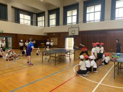 卓球の「新井 周」さんに来校していただき、指導をしてもらいました。