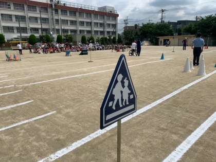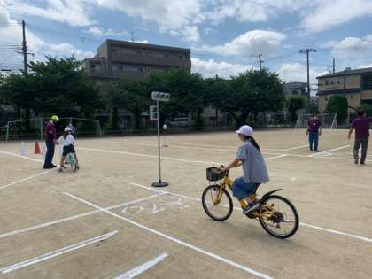 4・5・6年生は交通標識を教えていただいた後に、実際に自転車に乗ってどのようにすれば安全にできるのかを体験しました。