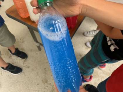 みんなで協力して、運動場に色鮮やかなペットボトルが並びました。
