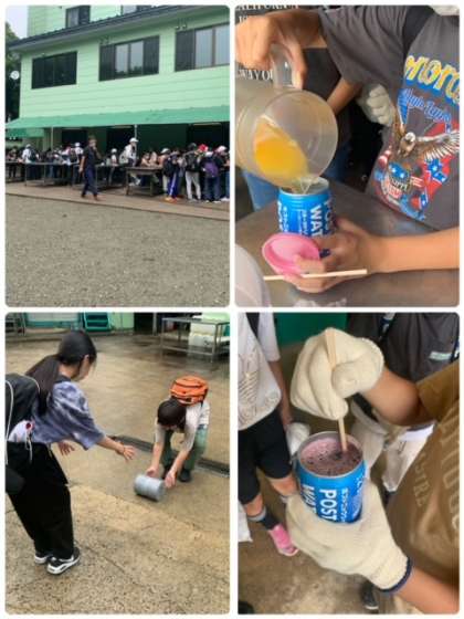 ジュースを入れ、塩と氷を入れてたくさん転がします。