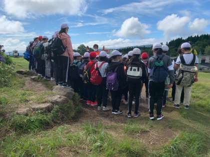 出発前にモニュメントで学年写真の撮影です。