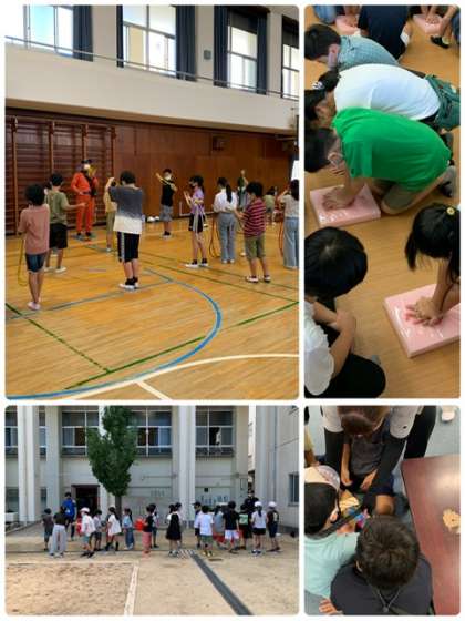 新聞紙でスリッパや器を作ったり、バケツリレーやフィールドワークをしたり、起震車に乗ったりと様々な体験を通して、防災の大切さを学びました。