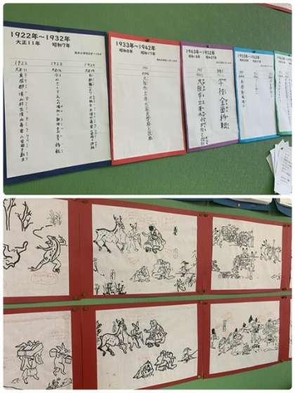 また、図画工作科で取り組んだ「鳥獣戯画」では、