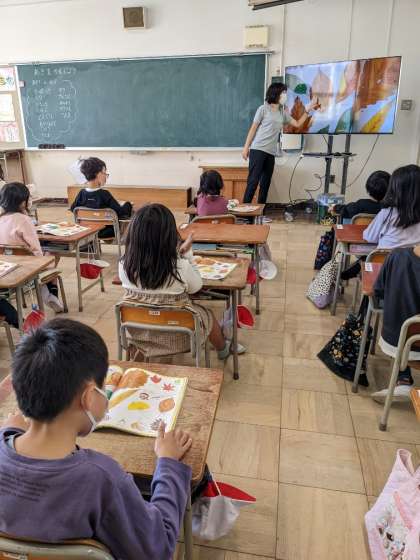 と校舎の裏のいがぐりを見つけて、嬉しそうにしていました。