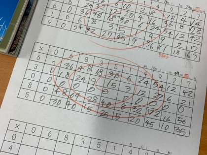 ちょっとした時間に百マス計算に取り組んでいるようです。