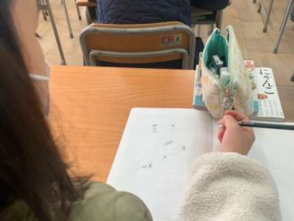 先生の話を聞いて、懸命にメモをとる子どもがいました。