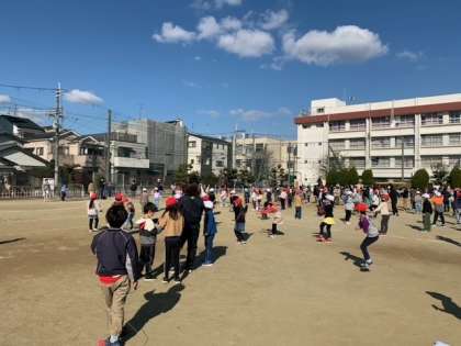 1・3・5年が運動場で取り組みました。
