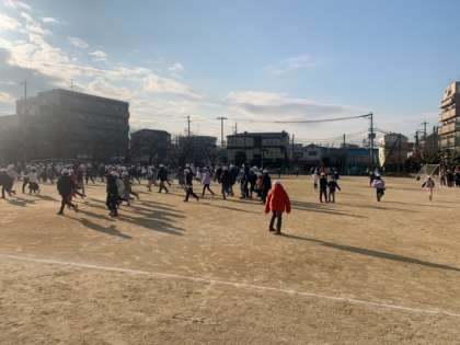 南運動場でたてわり班に分かれて「ふえおに」をしました。