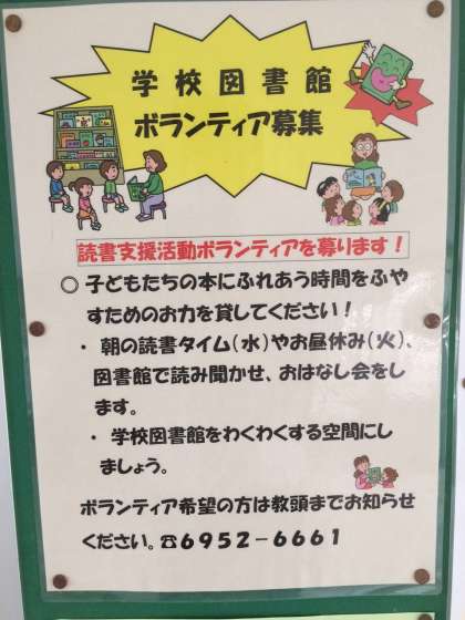 子どもたちのために、本の読み聞かせや本の整理、修理等をしていただける方を募集しています。