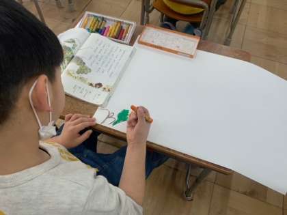 物語も色彩豊かな作品なので、子どもたちの絵が完成するのが楽しみです。