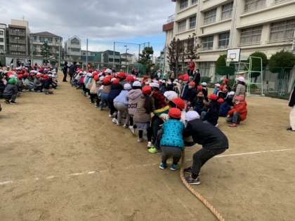 など、それぞれの学年と綱引きをします。