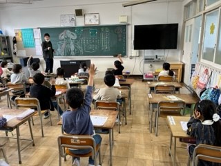 「つ」や「く」のつく言葉をたくさん発表し、みんなで読みました。