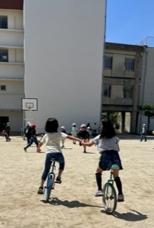 昨日とは打って変わって、晴天で暖かい休み時間。太陽の光を浴びて、子どもたちはとてもうれしそうに遊んでいました。