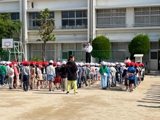 「もうすぐ、全校遠足があります。班のリーダーとなる6年生は、みんなをどうまとめていけばよいか、ほかの学年の人は、どう協力すればよいかを考えて、みんなが楽しめる全校遠足にしてほしいです。」