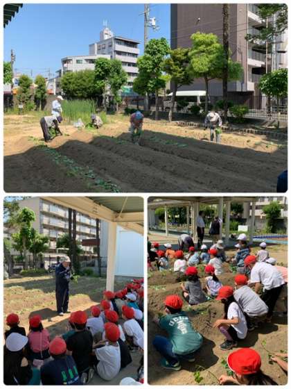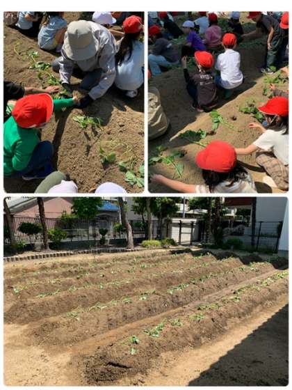 地域の方のお話を聞いて、「大きなさつまいもになあれ」と、どの子もそっと土をかぶせて上手に植えることができました。
