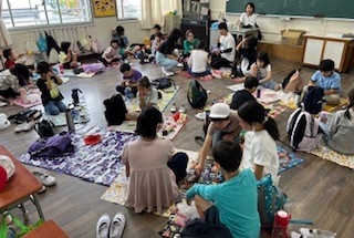 今年度から、最近のこの時期でも暑い気候に配慮して、学校に帰ってきてからお弁当を食べることにしました。再度たてわり班のみんなで集まり、涼しい教室で、おいしくお弁当やおやつをいただきました。