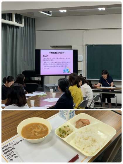 栄養教諭の先生に来ていただき、学校給食について、そのねらいや献立ができるまでなどのお話を聞きました。