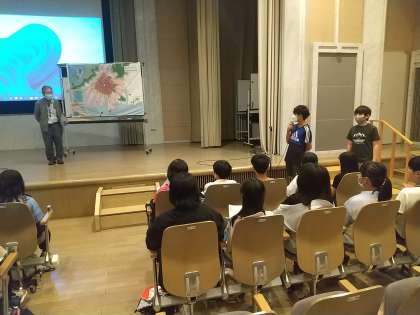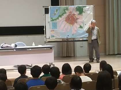 先生は知らない、子ども達も当然知らない。そんな内容を実際に被爆された語り部さんにお話をしていただきました。資料ではなく、人が語る言葉から伝わるものを子ども達は真剣に受け取っていました。質問にこたえながら、しっかりとメモをとりました。