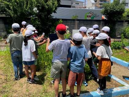 春から4年生で育てているへちま・ひょうたんを観察しに行きました。すると、ひょうたんの実ができているのを子どもたちが見つけてくれました。すくすくと育って大きくなってほしいものです。