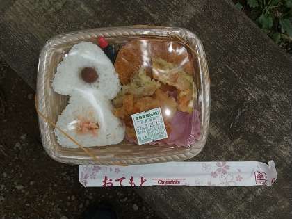 美味しいお弁当、自然の中で食べると美味しさ5割増。