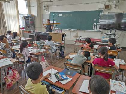 2年生の算数科では、dLやLを使い、大きいかさの表し方を学習しています。