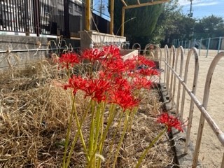 清水小学校の南運動場には、毎年決まった場所に「ヒガンバナ」が咲きます。