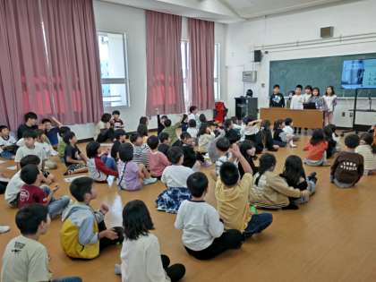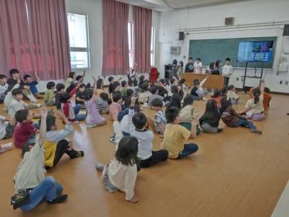 町探検で知ったことを、パワーポイントのような発表ノートにまとめて、班ごとに発表しました。緊張で苦笑いしながらも、大きな声ではきはきと発表できました。3択クイズでは、「そうなの!?」「初めて知った!!」と、楽しみながら学習していました。