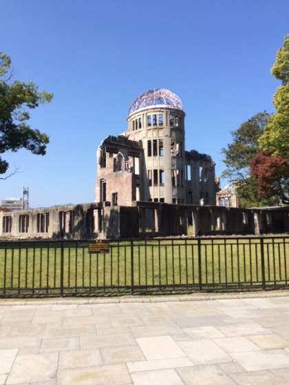 広島に無事に到着しました。とてもいい天気です。平和集会をしました。