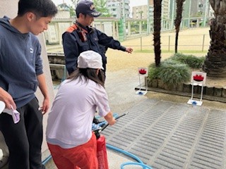 訓練の後、2年生は消火体験、5年生は煙体験を行いました。