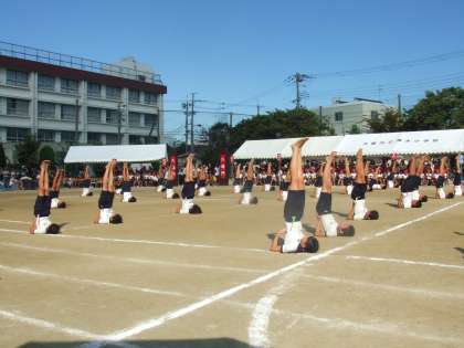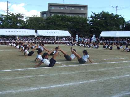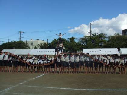 運動会のプログラムの最後を飾る組体操です。この日のために、6年生全員が心を一つに、友だちを信じて練習に取り組んできました!!
