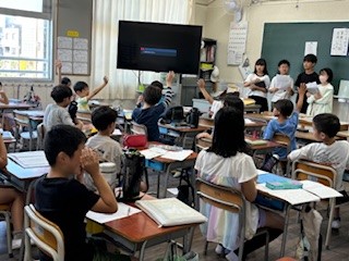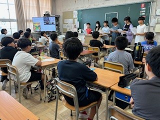 パワーポイントで資料を提示しながら、調べたこと、わかったこと、感じたことを学年に応じた言葉を選んで報告しました。