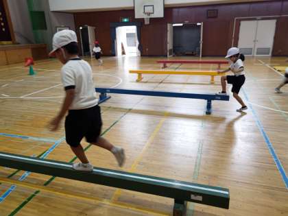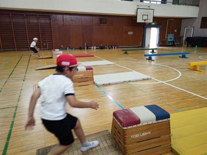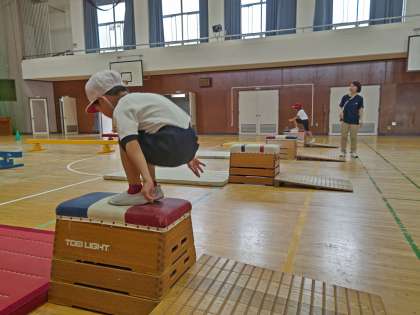 跳び箱や平均台等を使用して、体つくり運動に取り組んでいます。