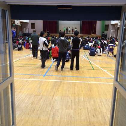木曜日の朝は1〜6年生がそれぞれのグループ(たてわり班)に混ざって、児童朝会を行います。今日は、「イントロクイズ」をしました。最近の曲が聞こえてきて、子どもたちは大盛り上がりです。