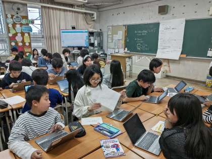 一人一台端末を活用して調べ、まとめています。