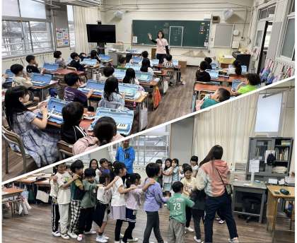 1組は、鍵盤ハーモニカで「かえるのがっしょう」を演奏しています。
