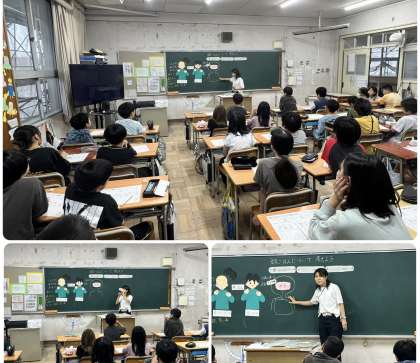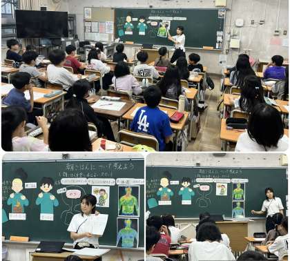 栄養教諭の方に来ていただいて、朝ご飯の役割について考える学習をしました。