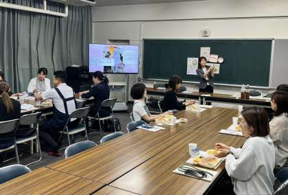 大宮小学校の栄養教諭の方が来られて、給食についての話をしてくださった後、給食を試食しました。