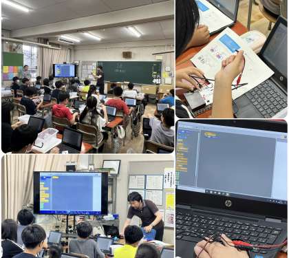 区役所の方と大阪工業大学から講師の先生が来てくれて、LEDを使ったプログラミングの仕方を教えてくださいました。