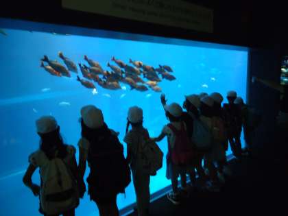 お天気に恵まれた5月17日、3年生が海遊館に行ってきました。大きな水槽にいろいろな種類の海の生き物がいました。それを見て、子どもたちは大喜びでした。